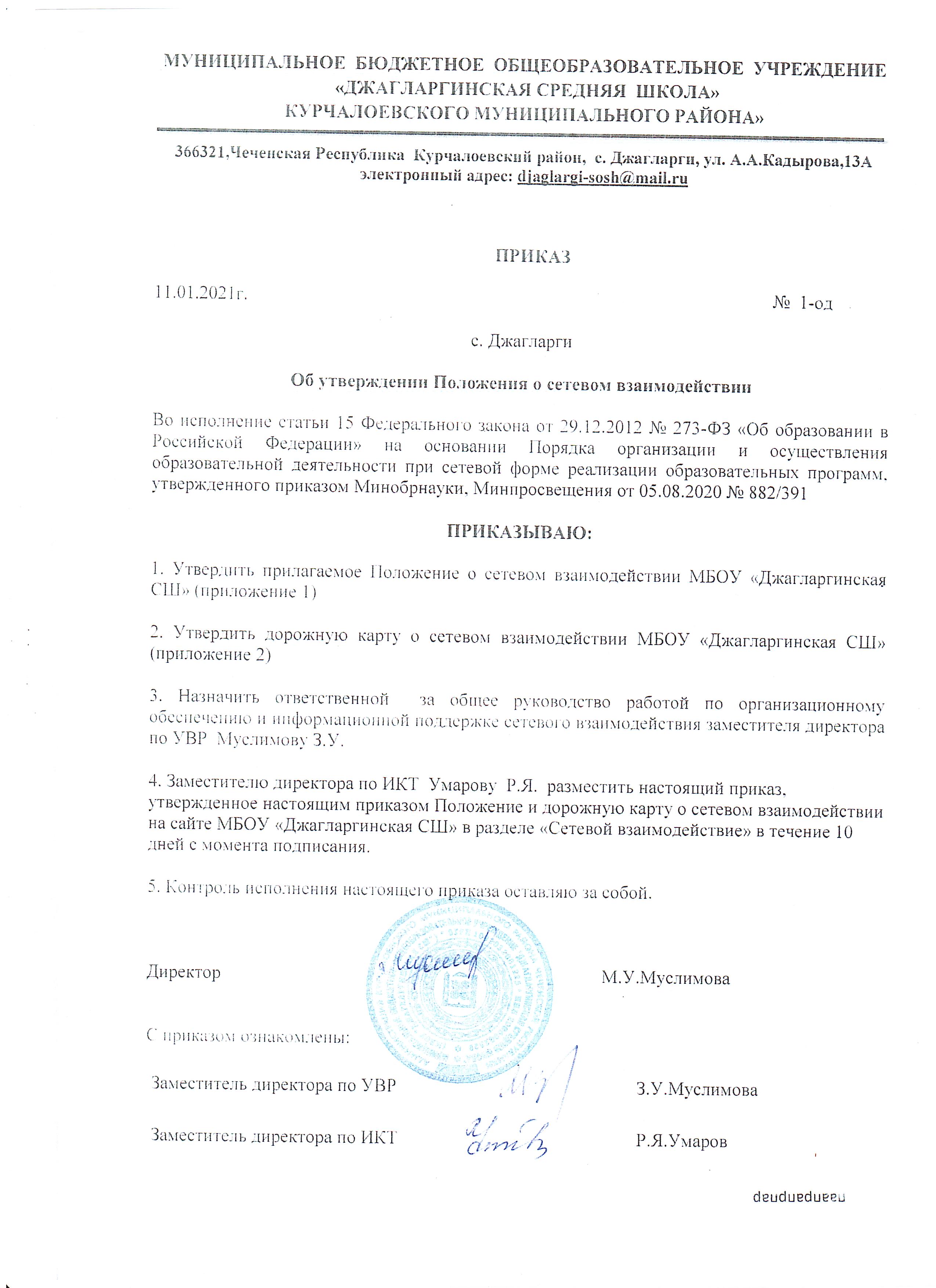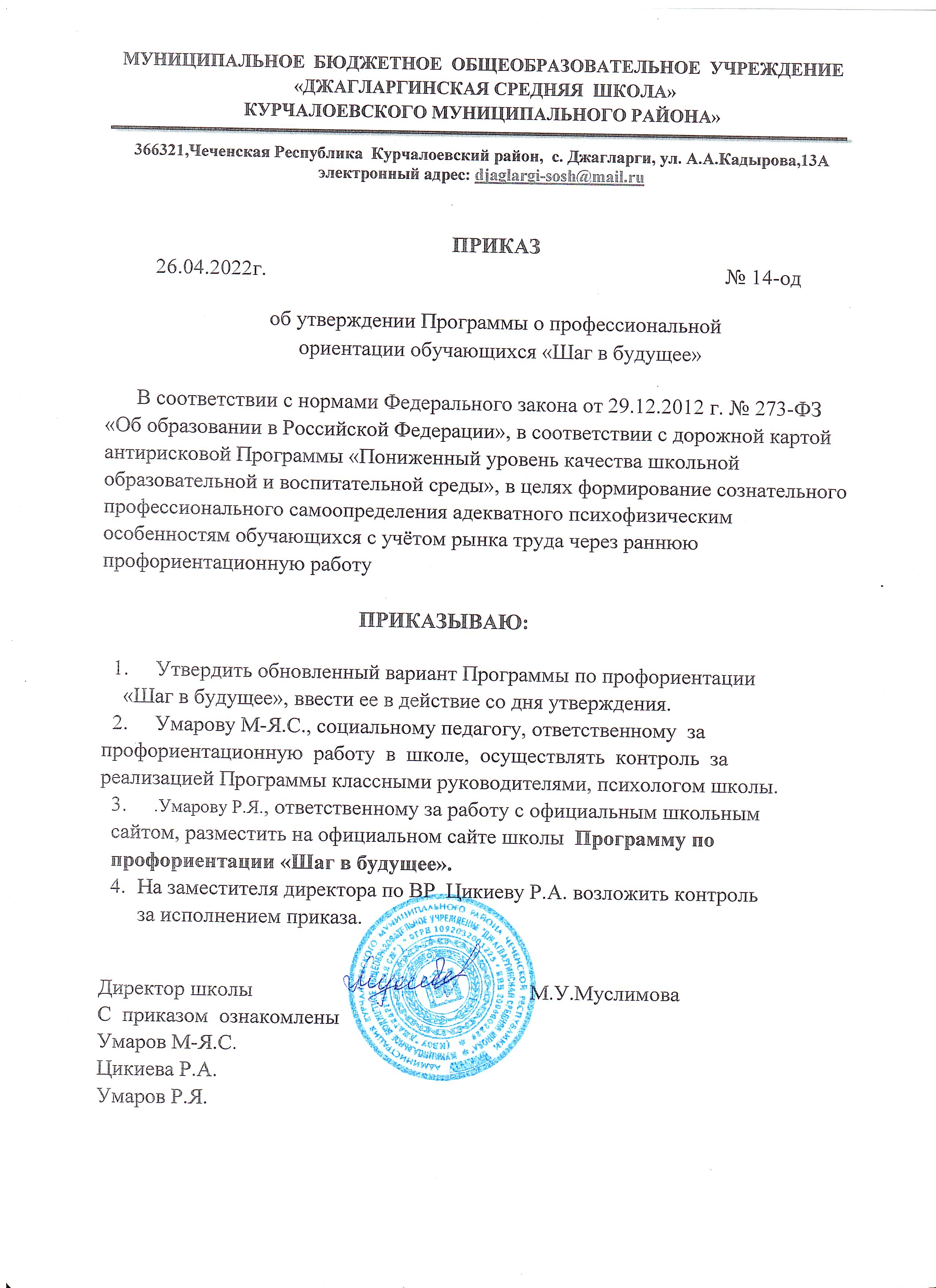 Приказ №14-од от 27 января 2025г. О закреплении муниципальных бюджетных общеобразовательных учреждений за конкретными территориями Курчалоевского муниципального района