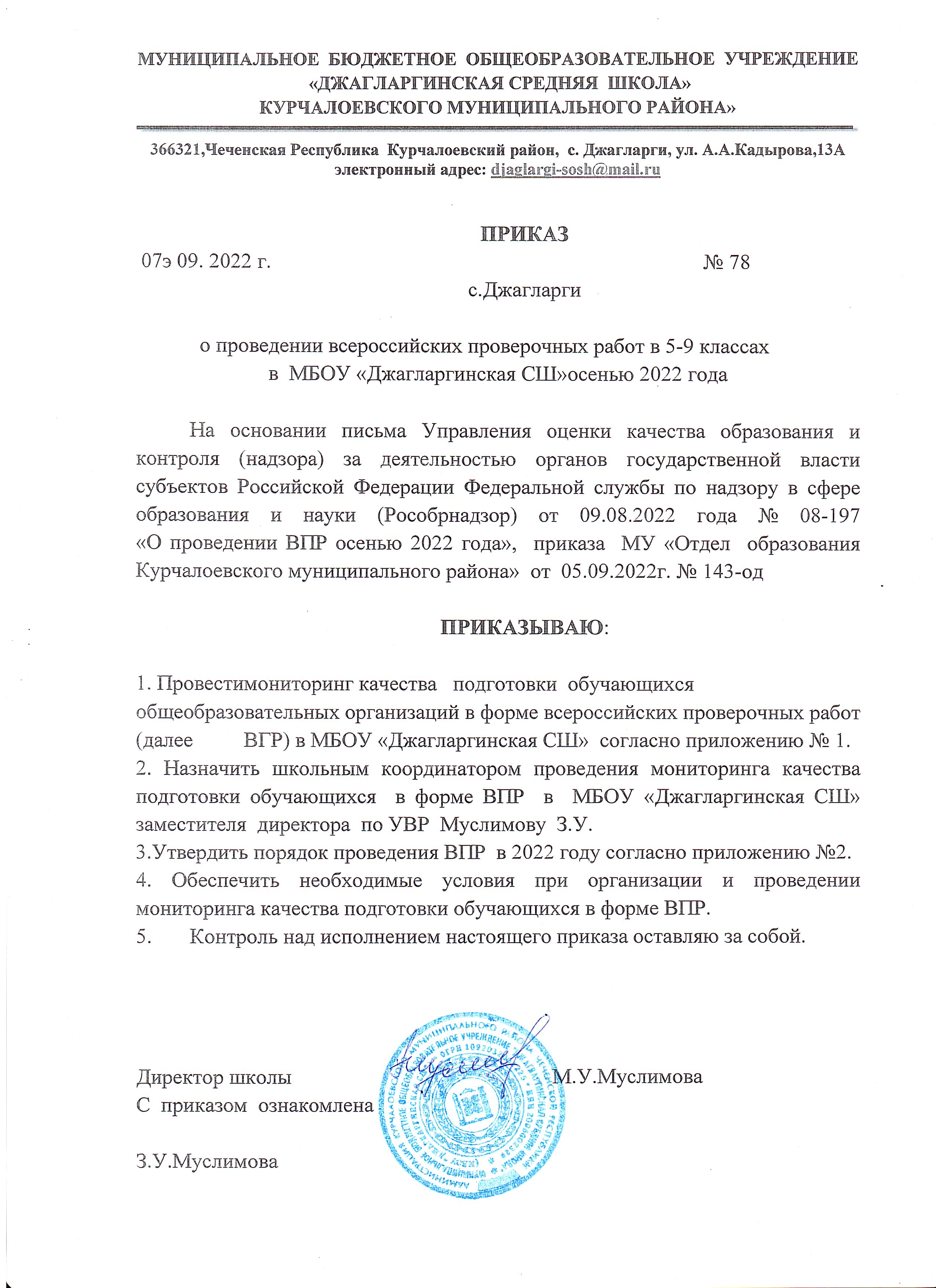 Приказ № 109-од от 12 мая 2023 г. О закреплении государственных и муниципальных бюджетных общеобразовательных организации за конкретными территориями Курчалоевского муниципального района